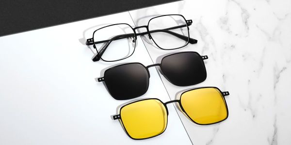Square Black Metal Full-rim Bifocal & Progressive, Adjustable Nose Pads, For Wide Face, For Low Nose Bridge, Clip Ons Glasses
