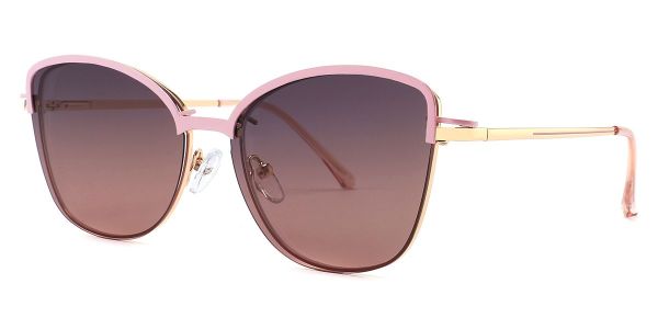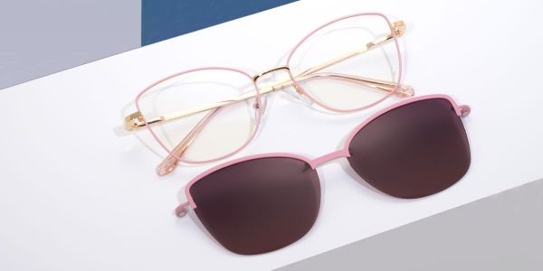 Cat Eye Pink Metal Full-rim Bifocal & Progressive, Adjustable Nose Pads, For Low Nose Bridge, Clip Ons Glasses