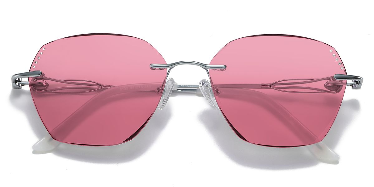 Buy best women silver rimless titanium geometric eyeglasses online at KZFOO, including prescription glasses, sunglasses and non-prescription glasses