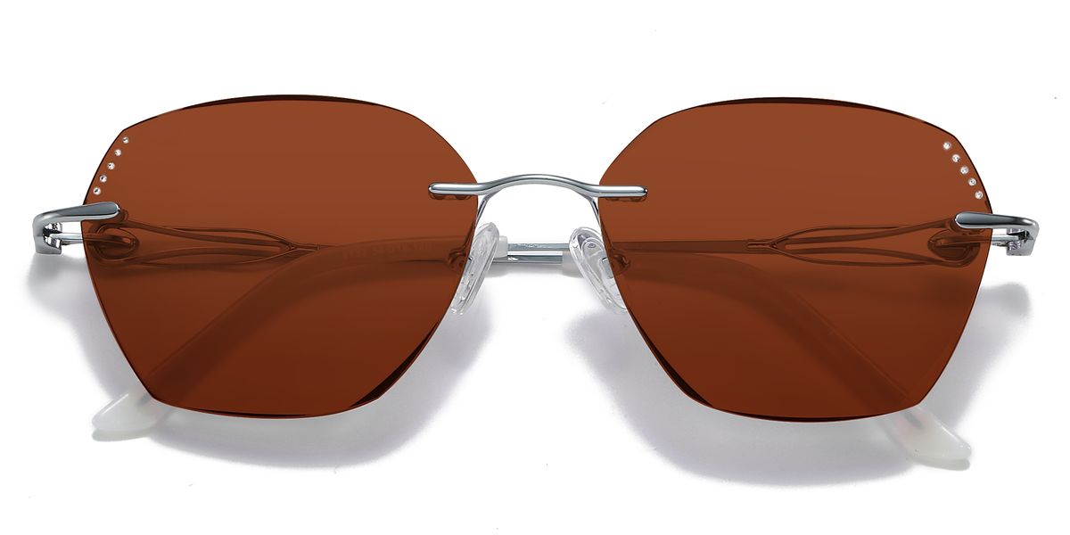 Buy best women silver rimless titanium geometric eyeglasses online at KZFOO, including prescription glasses, sunglasses and non-prescription glasses
